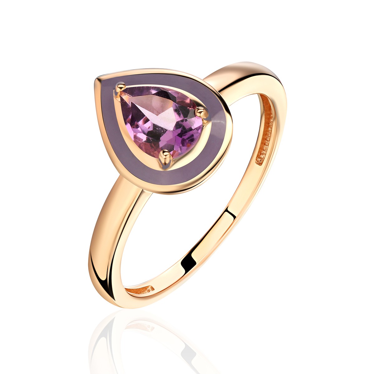 Кольцо с аметистом и эмалью из красного золота 585 пробы (арт. 272915)