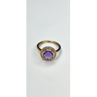 Кольцо с аметистом и фианитом из красного золота 585 пробы (арт. 272917)