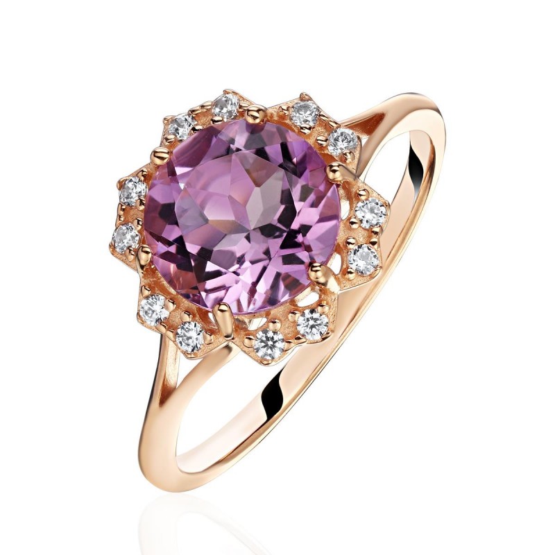 Кольцо с аметистом и фианитом из красного золота 585 пробы можно купить в нашем интернет-магазине с доставкой по Москве, а также транспортными компаниями по всем городам России.