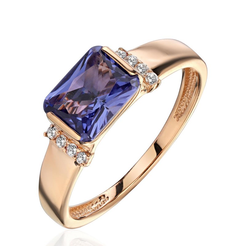 Кольцо с аметистом и фианитом из красного золота 585 пробы (арт. 275690)