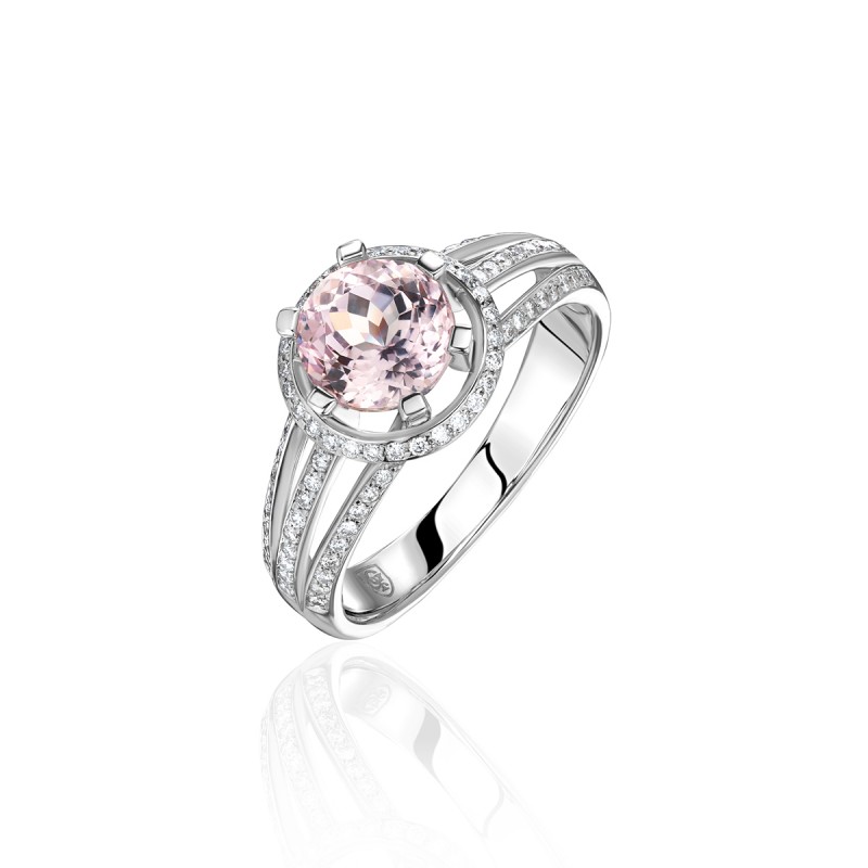 Кольцо с бриллиантом и Кунцит из белого золота 750 пробы (арт. 271292)