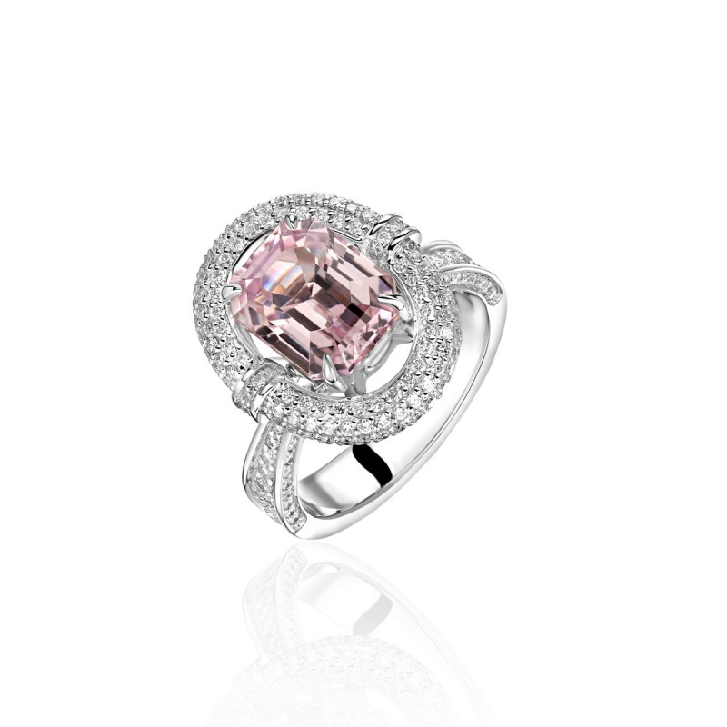 Кольцо с бриллиантом и Кунцит из комбинированного золота 750 пробы (арт. 271320)