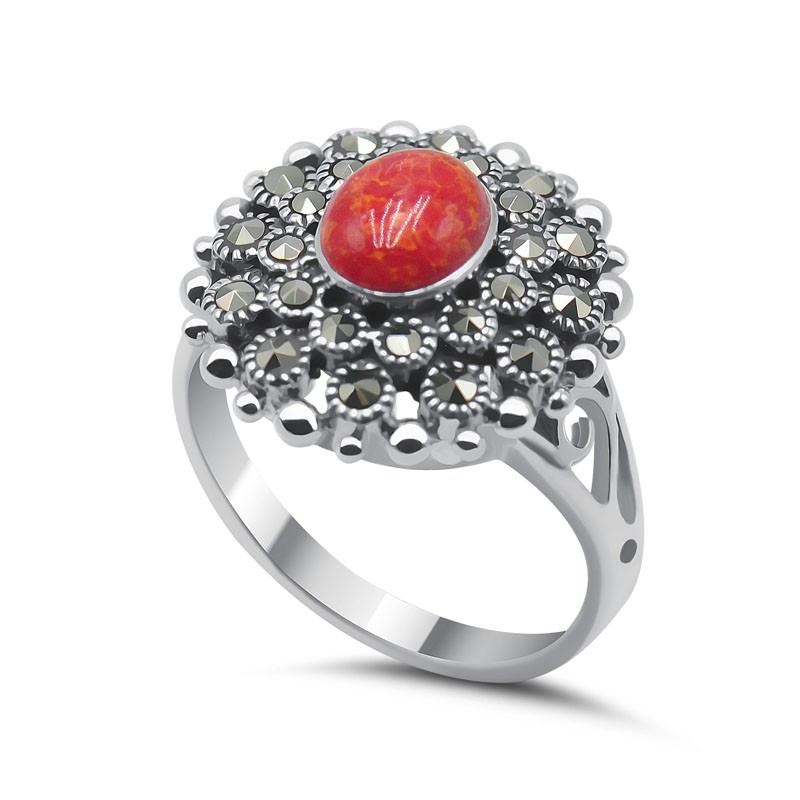 Кольцо с кораллом и марказитом из серебра 925 пробы можно купить в нашем интернет-магазине с доставкой по Москве, а также транспортными компаниями по всем городам России.