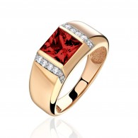 Кольцо с гранатом и фианитом из красного золота 585 пробы (арт. 272912)