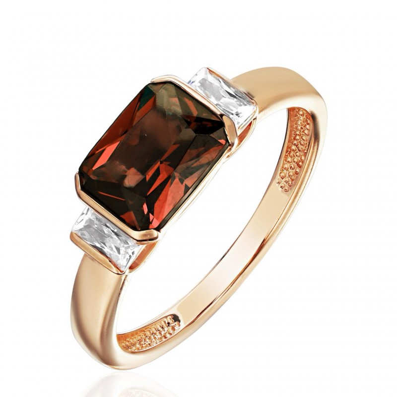 Кольцо с гранатом и фианитом из красного золота 585 пробы (арт. 275687)