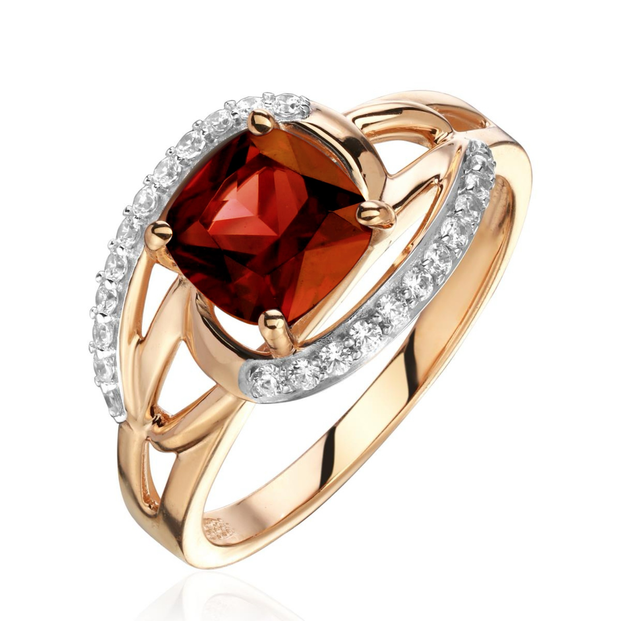 Кольцо с гранатом и фианитом из красного золота 585 пробы (арт. 277768)