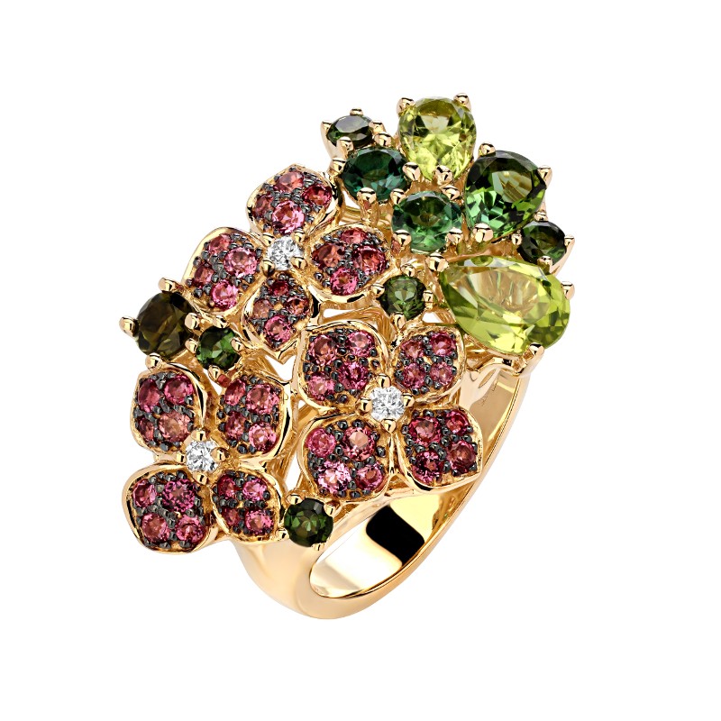 Отзывы о "Кольцо с хризолитом, бриллиантом и турмалином из желтого золота 585 пробы (арт. 271169)"