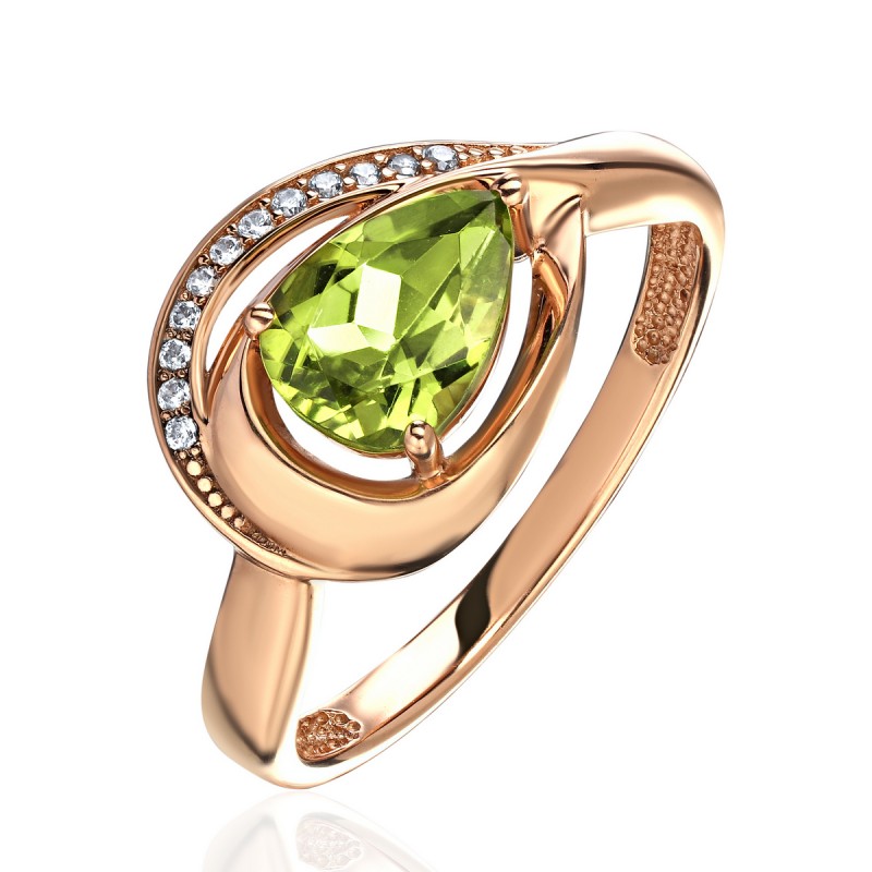 Кольцо с фианитом и хризолитом из красного золота 585 пробы можно купить в нашем интернет-магазине с доставкой по Москве, а также транспортными компаниями по всем городам России.