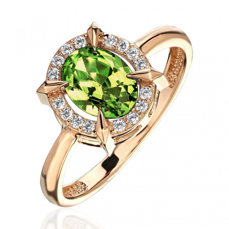 Кольцо с фианитом и хризолитом из красного золота 585 пробы (арт. 282004)