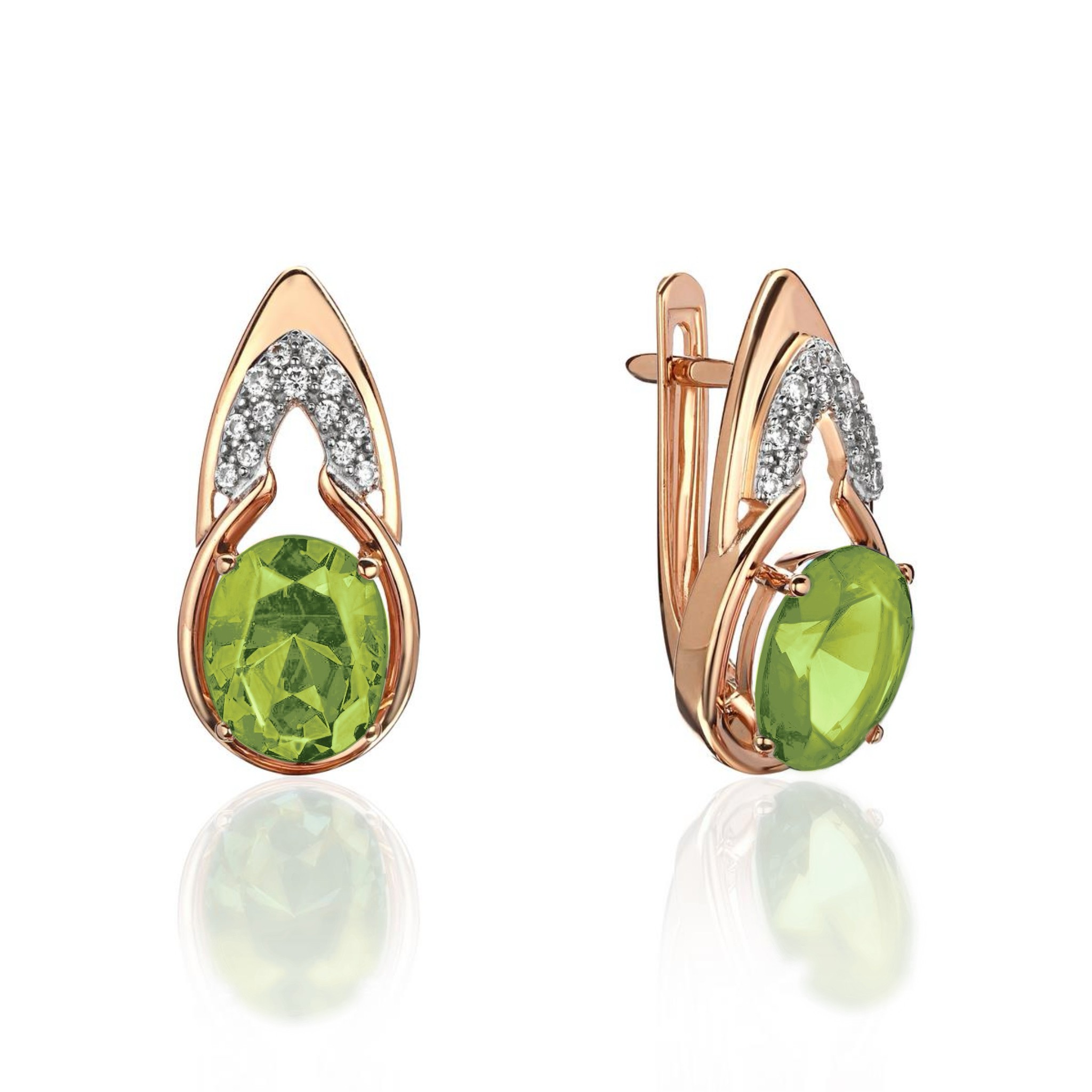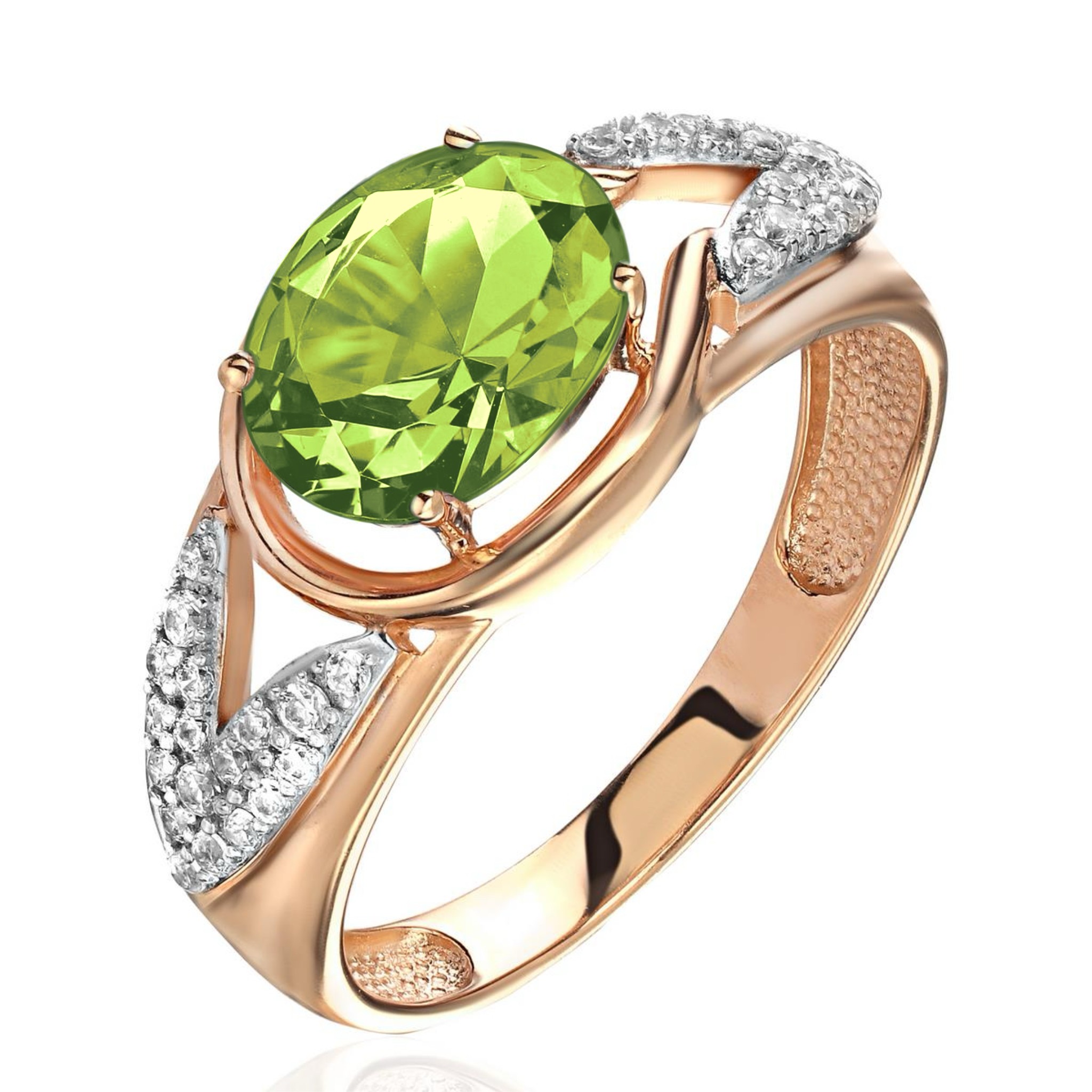 Кольцо с фианитом, хризолитом и фианитом из красного золота 585 пробы можно купить в нашем интернет-магазине с доставкой по Москве, а также транспортными компаниями по всем городам России.