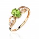 Кольцо с фианитом и хризолитом из красного золота 585 пробы (арт. 284760)