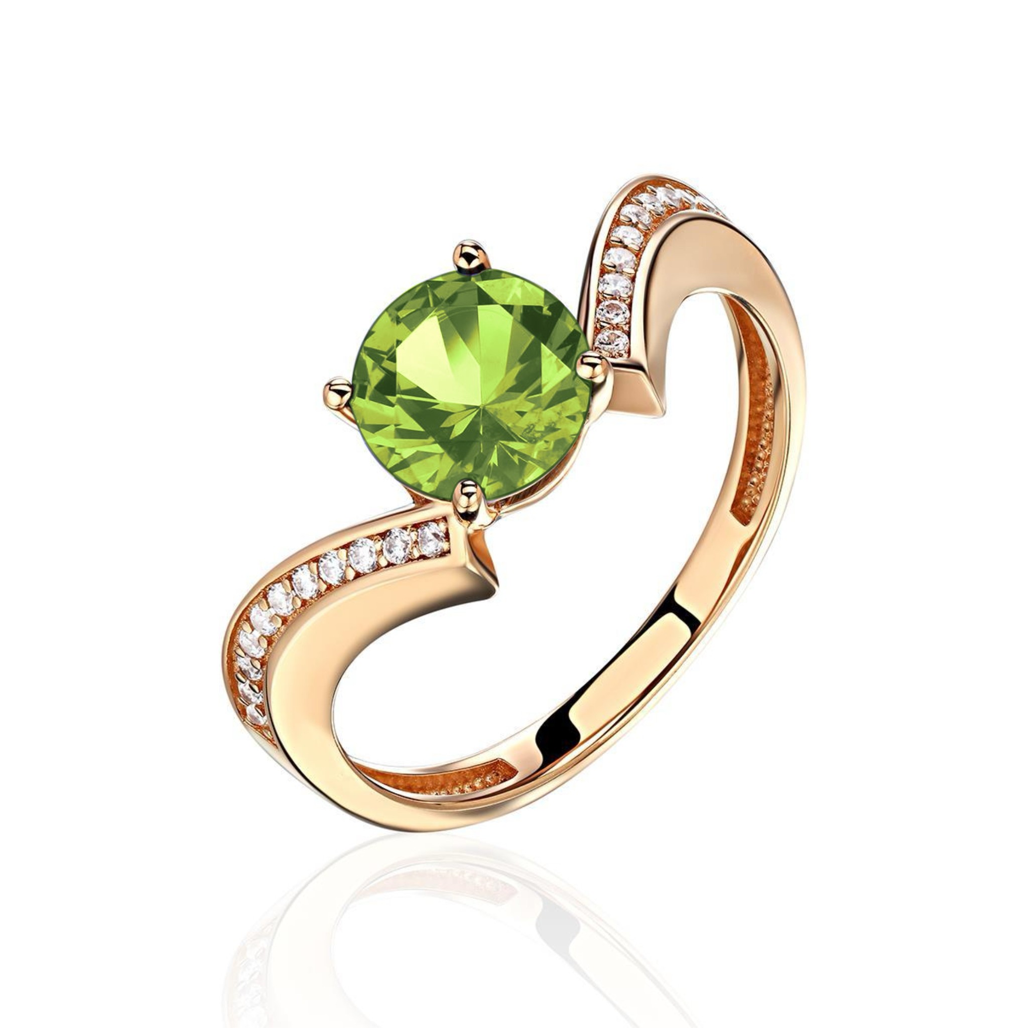 Кольцо с фианитом и хризолитом из красного золота 585 пробы можно купить в нашем интернет-магазине с доставкой по Москве, а также транспортными компаниями по всем городам России.