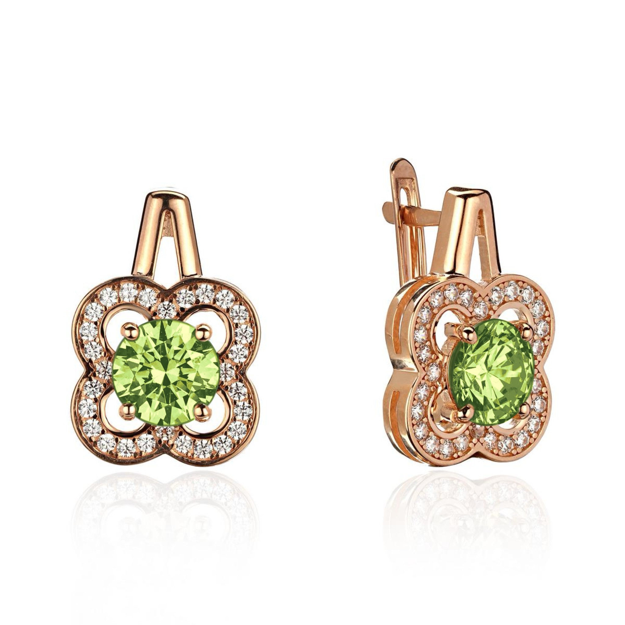 Кольцо с фианитом и хризолитом из красного золота 585 пробы (арт. 284762)