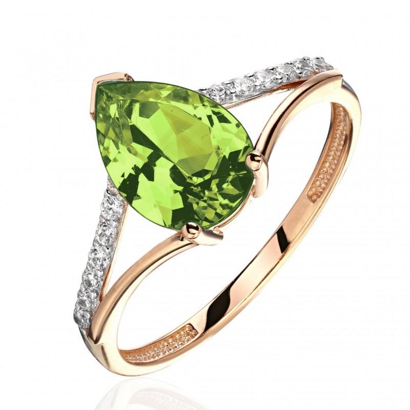 Кольцо с фианитом и хризолитом из красного золота 585 пробы можно купить в нашем интернет-магазине с доставкой по Москве, а также транспортными компаниями по всем городам России.