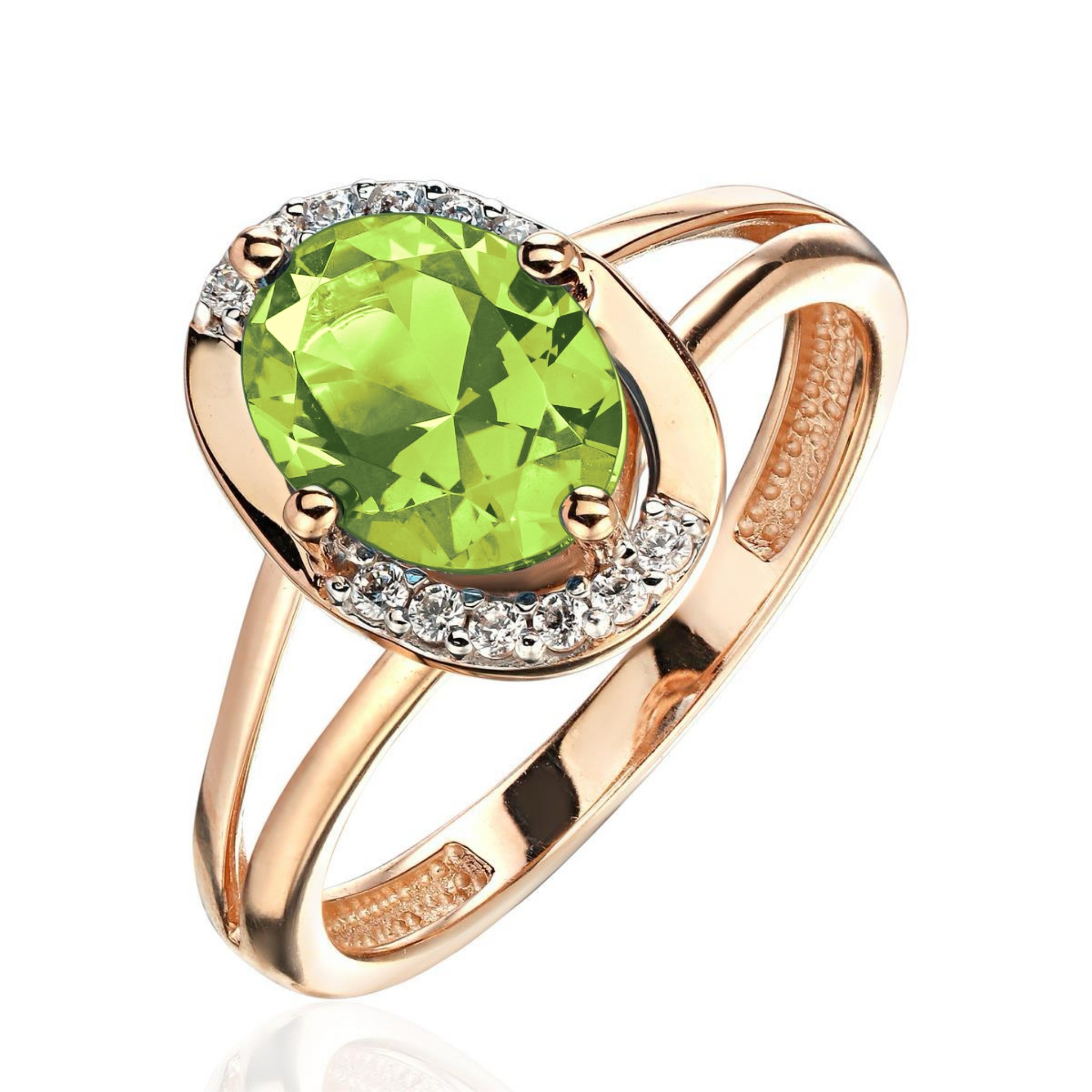 Кольцо с фианитом и хризолитом из красного золота 585 пробы (арт. 284766)