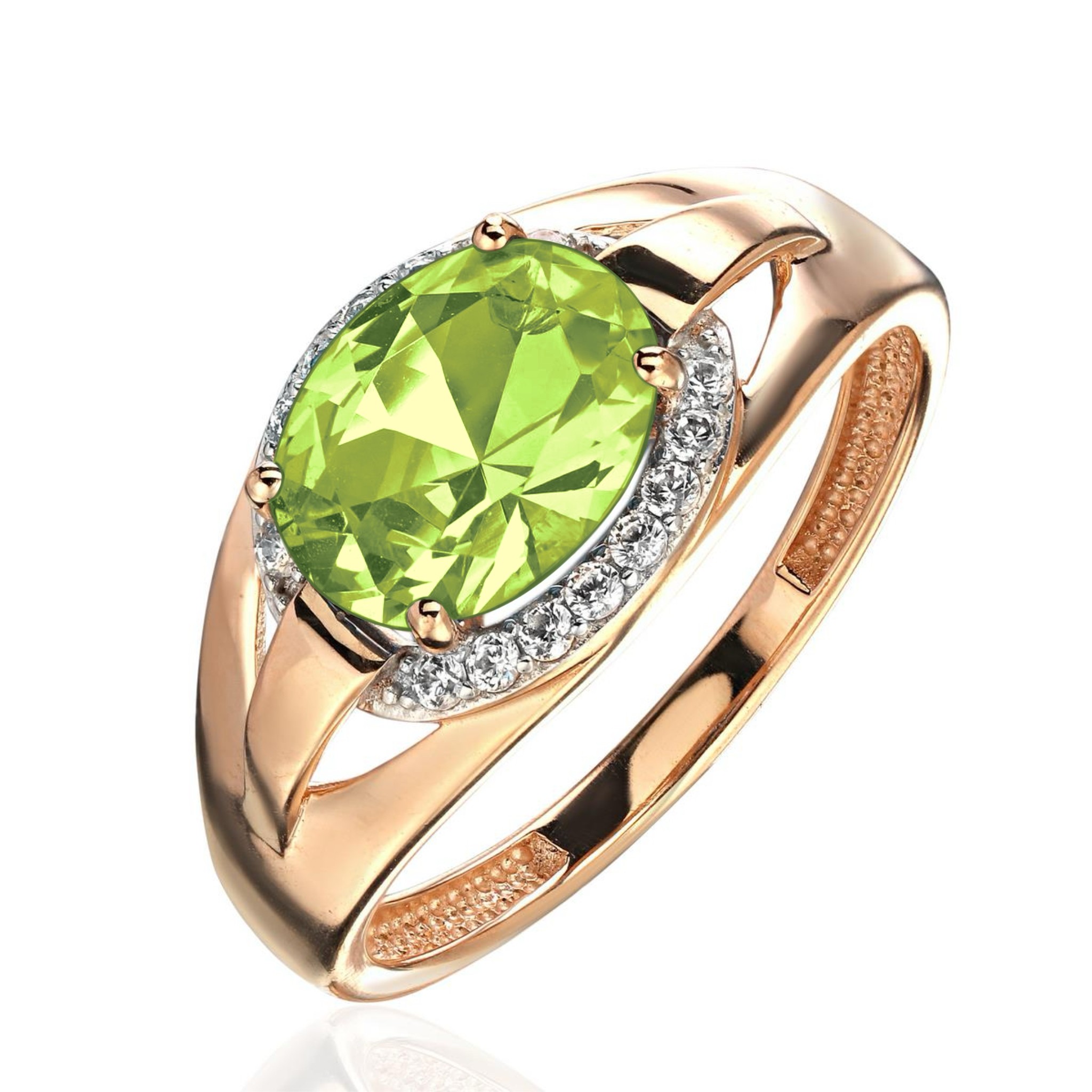 Кольцо с фианитом и хризолитом из красного золота 585 пробы можно купить в нашем интернет-магазине с доставкой по Москве, а также транспортными компаниями по всем городам России.