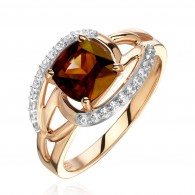 Кольцо с раухтопазом и фианитом из красного золота 585 пробы (арт. 278763)