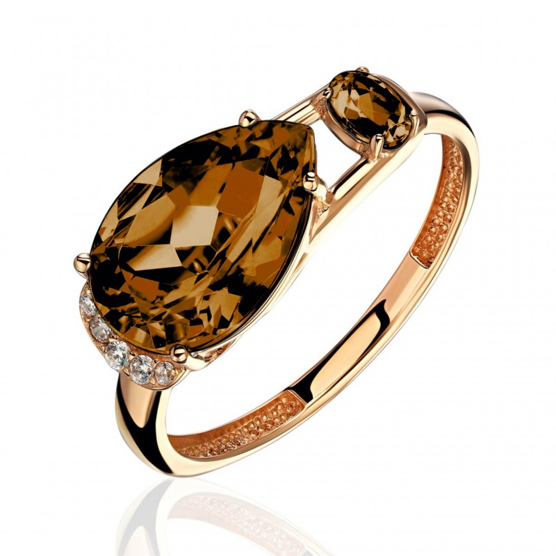 Кольцо с раухтопазом и фианитом из красного золота 585 пробы можно купить в нашем интернет-магазине с доставкой по Москве, а также транспортными компаниями по всем городам России.