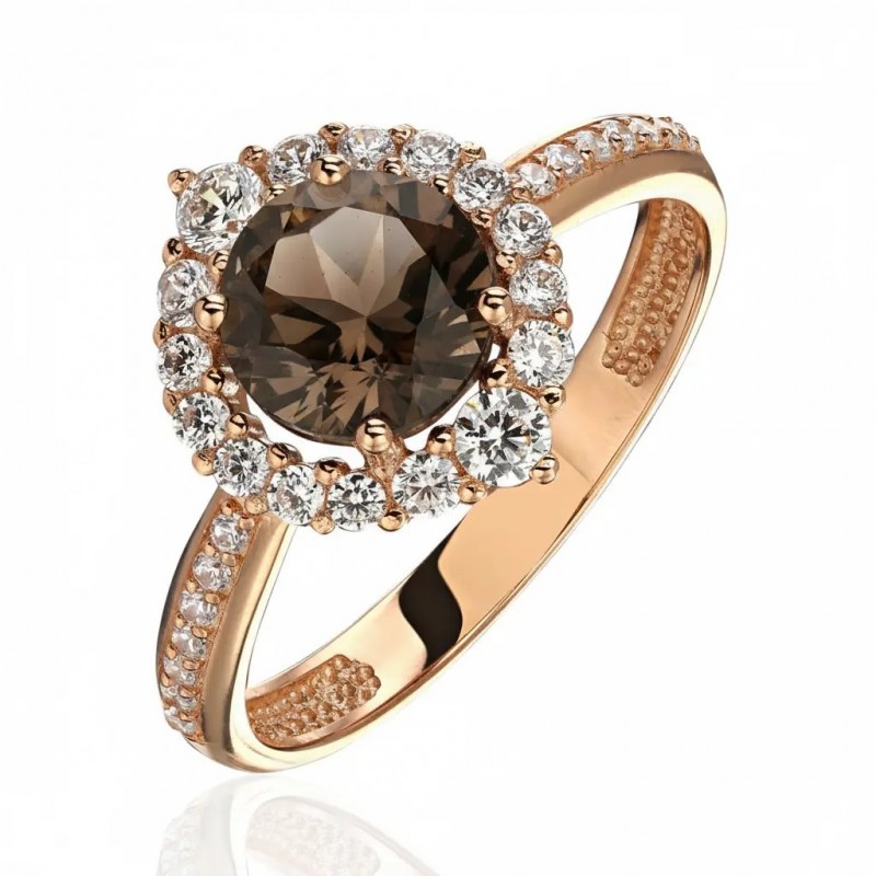 Кольцо с раухтопазом и фианитом из красного золота 585 пробы можно купить в нашем интернет-магазине с доставкой по Москве, а также транспортными компаниями по всем городам России.