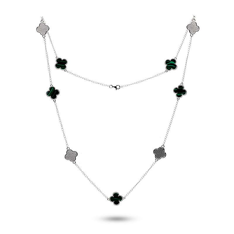 Колье с цирконом и малахитом из серебра 925 пробы (арт. 287005)