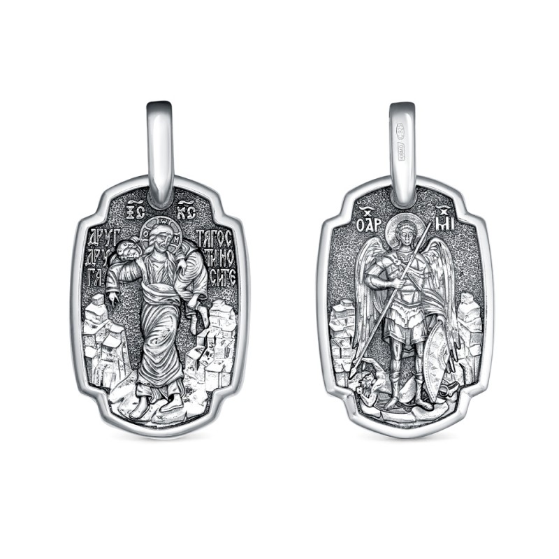 Подвеска Спаситель/АрхМихаил "Друг друга тяготы..." из серебра 925 пробы