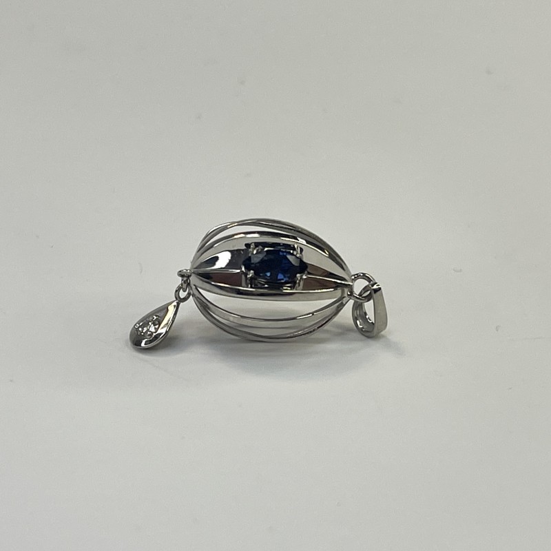 Подвеска с бриллиантом и сапфиром из белого золота 585 пробы (арт. 284847)