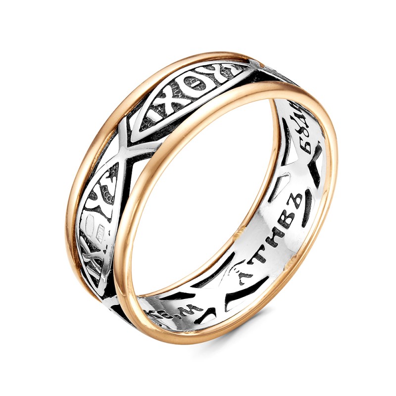 Кольцо Рыбки Христовы "Боже, милостив бу..." из серебра 925 пробы и золота 585 пробы, 7 мм (арт. 285164)