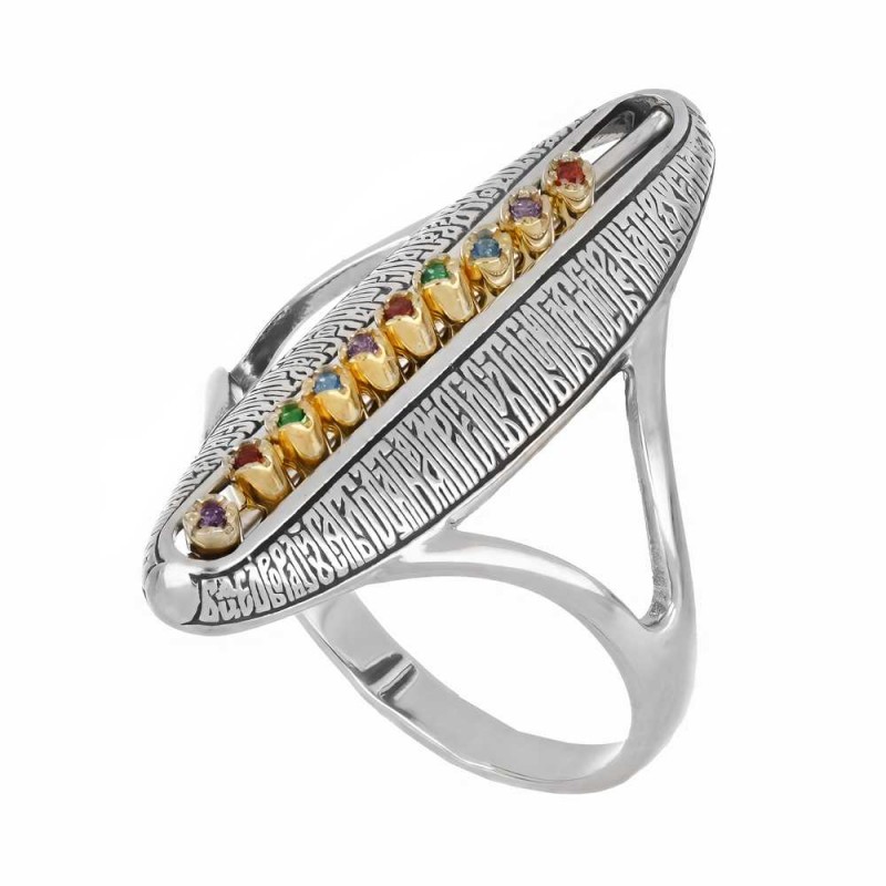 Кольцо Песнь Богородице (с позолотой) "Богородице Дево, ..." с агатом из серебра 925 пробы с позолотой 999, 3 мм (арт. 286032)