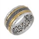Узкое кольцо по периметру инкрустированно 17 камнями и покрыто позолотой 585 пробы.