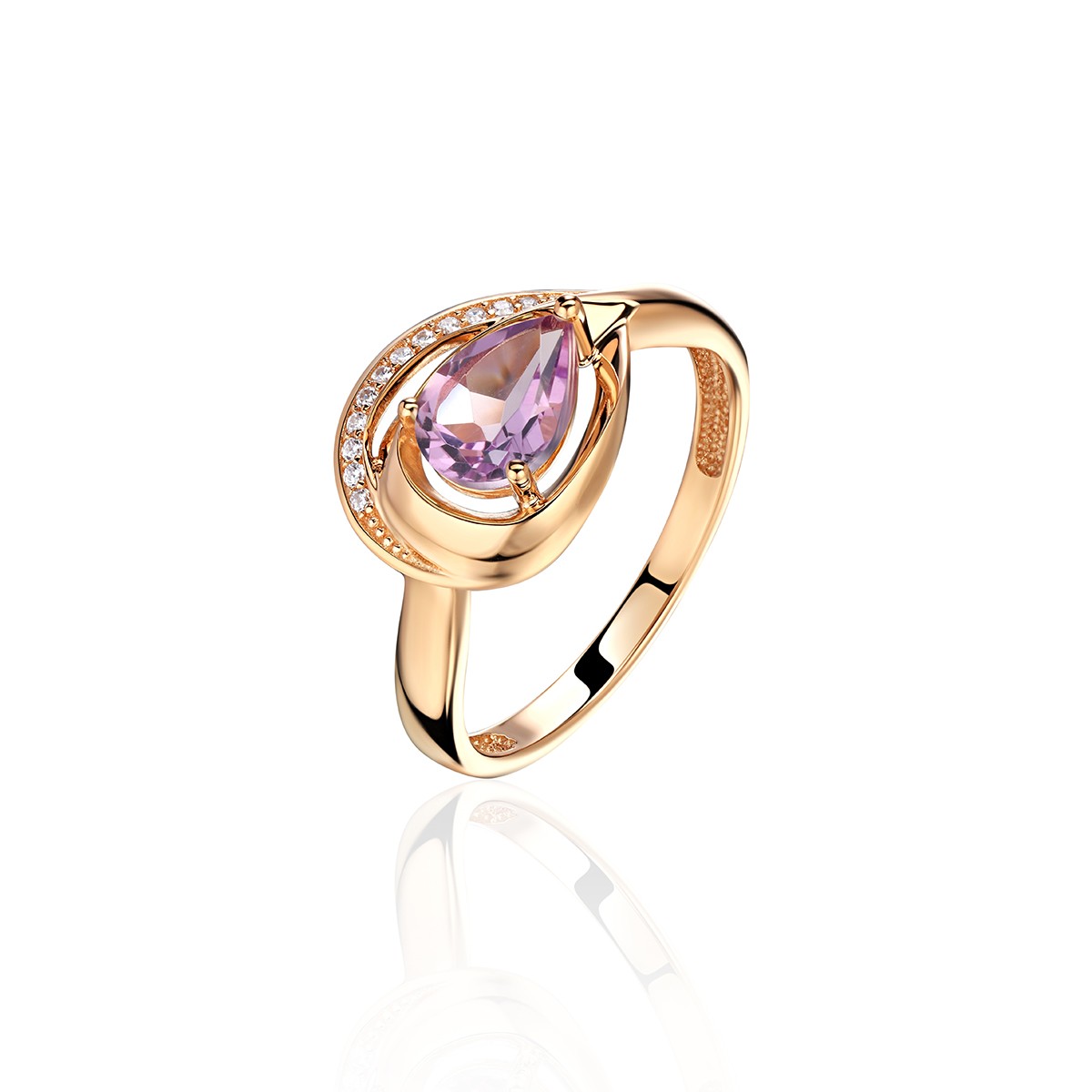 Серьги с аметистом и фианитом из красного золота 585 пробы (арт. 274226)