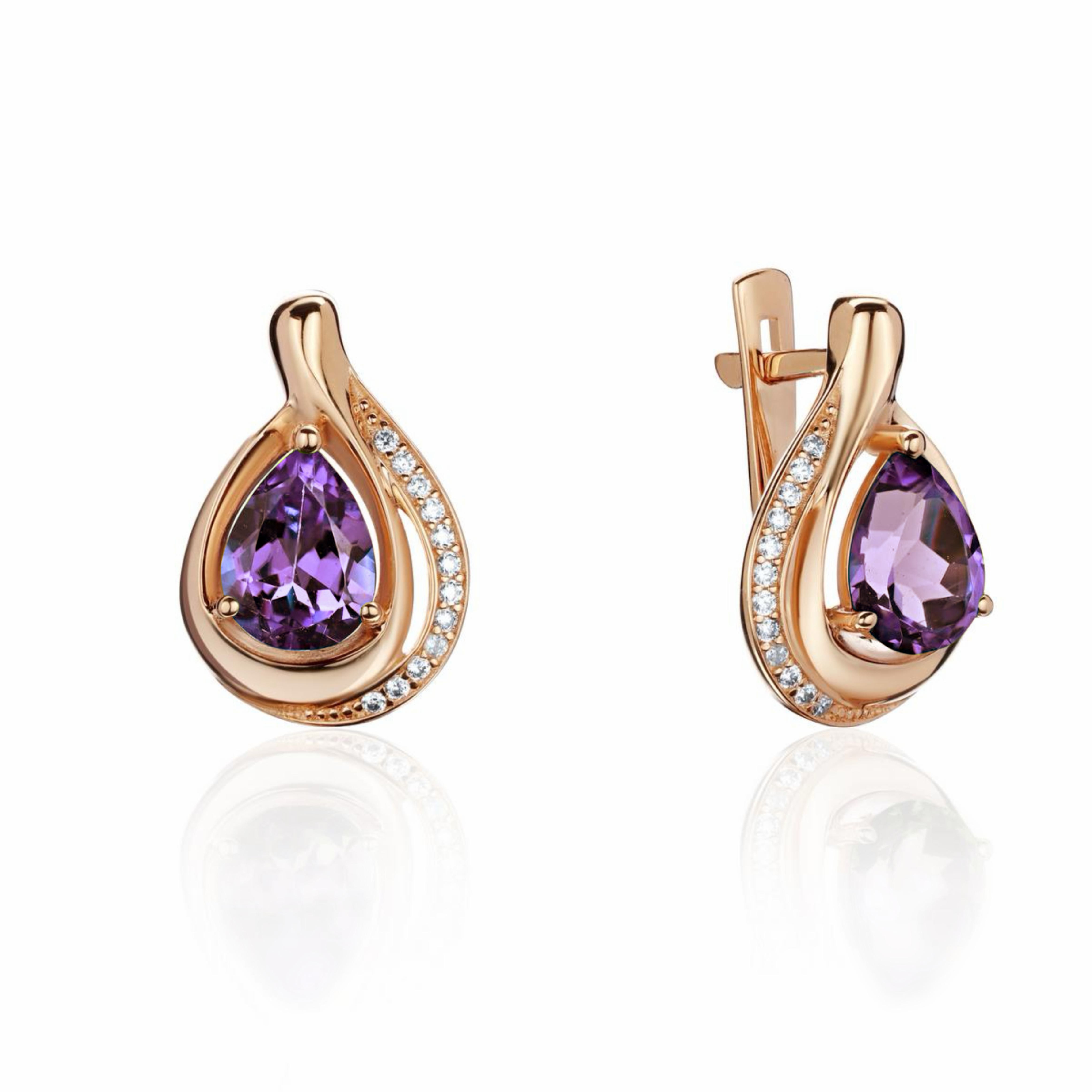 Серьги с аметистом и фианитом из красного золота 585 пробы можно купить в нашем интернет-магазине с доставкой по Москве, а также транспортными компаниями по всем городам России.