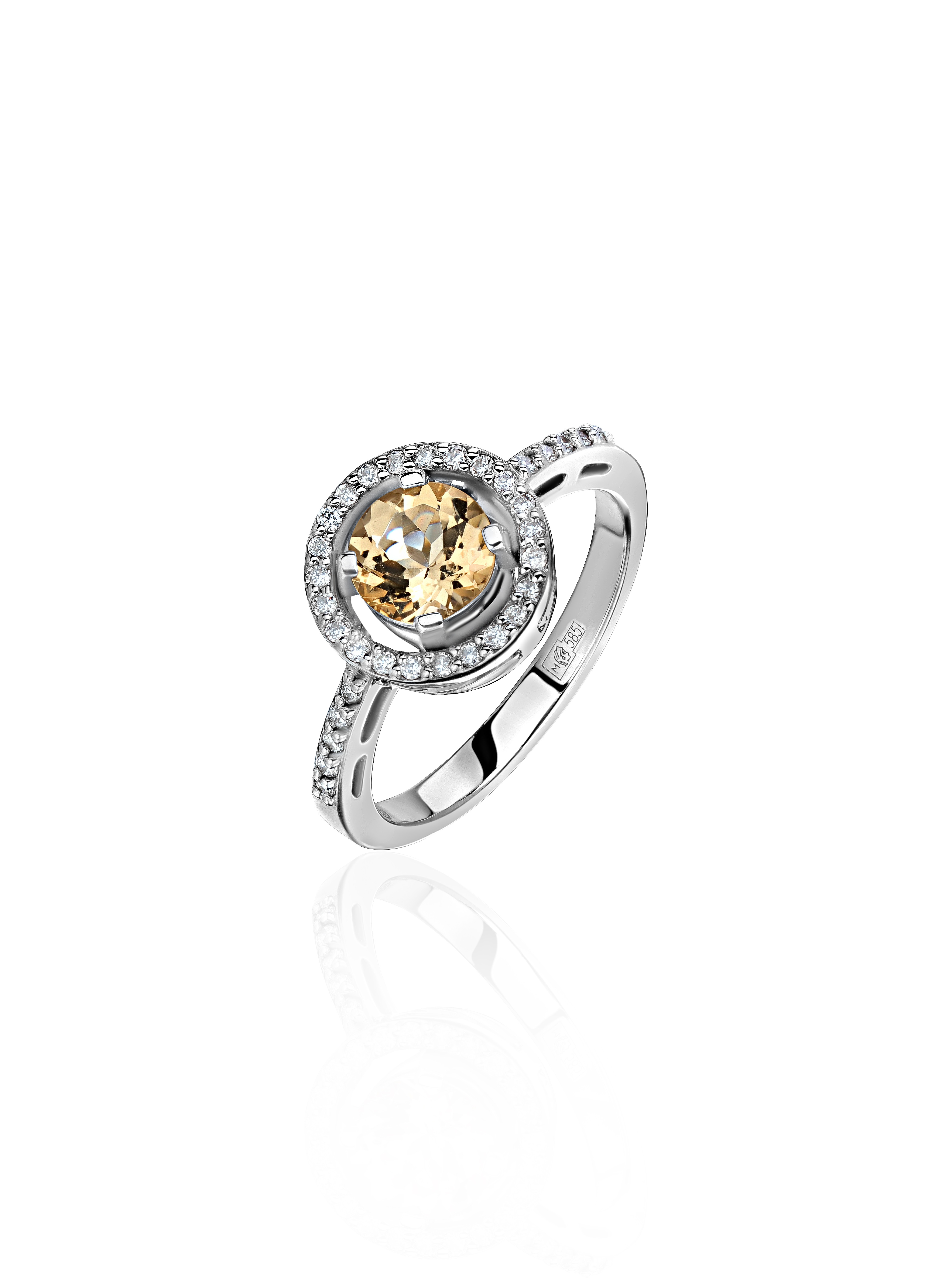Гелиодор круг 0/0 1шт. 0.7ct 6*0*0 - Размер 17Вес 3.26 гр.Бриллиант кр-57 4/5 33шт. 0.16ct