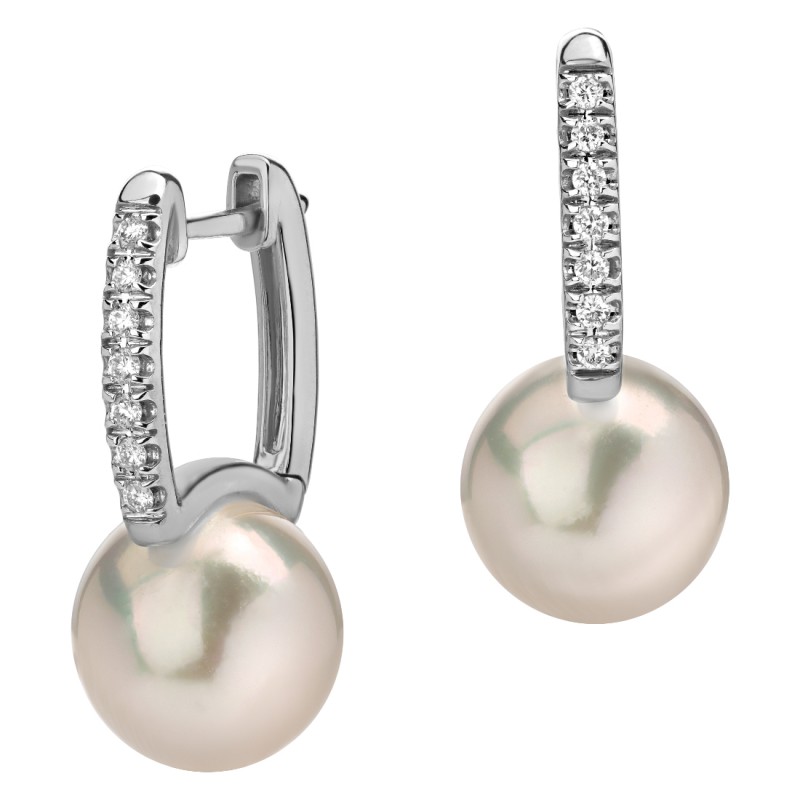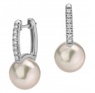 Серьги с жемчугом и бриллиантом из белого золота 750 пробы (арт. 271843)
