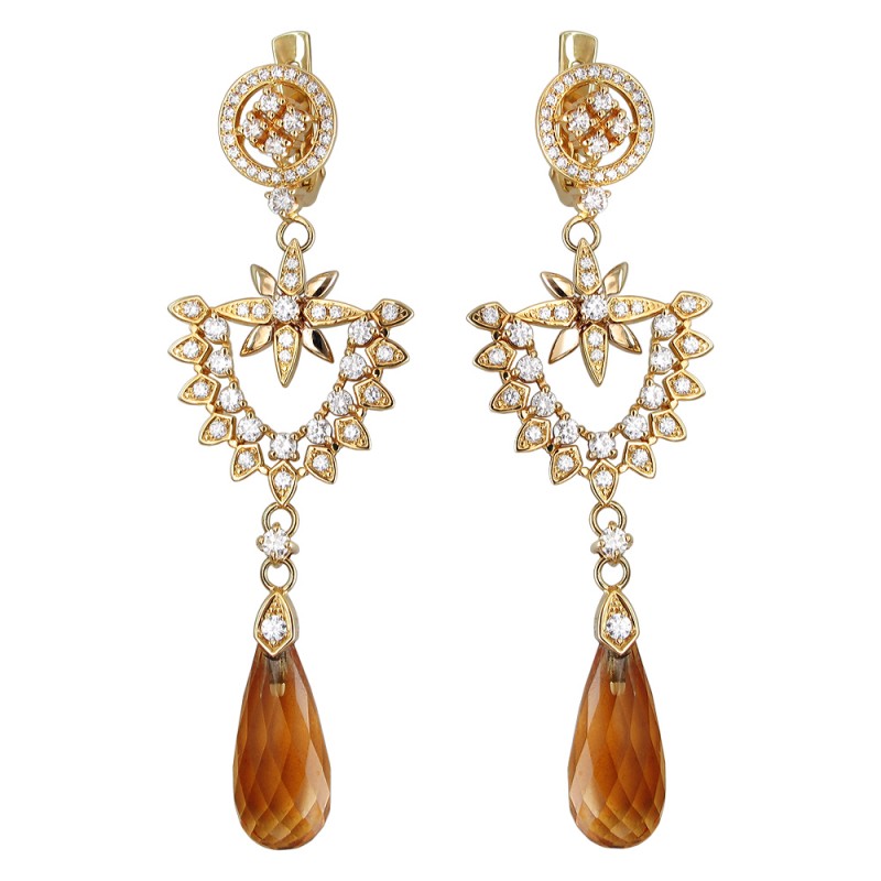 Серьги с цитрином и бриллиантом из комбинированного золота 750 пробы можно купить в нашем интернет-магазине с доставкой по Москве, а также транспортными компаниями по всем городам России.