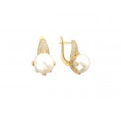 Серьги с жемчугом и бриллиантом из белого золота 585 пробы (арт. 275190)