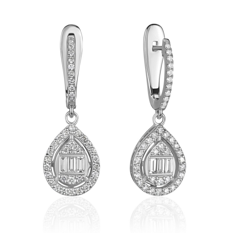 Серьги с бриллиантом из белого золота 585 пробы можно купить в нашем интернет-магазине с доставкой по Москве, а также транспортными компаниями по всем городам России.