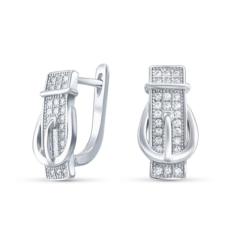 Серьги с фианитами из серебра 925 пробы с родиевым покрытием