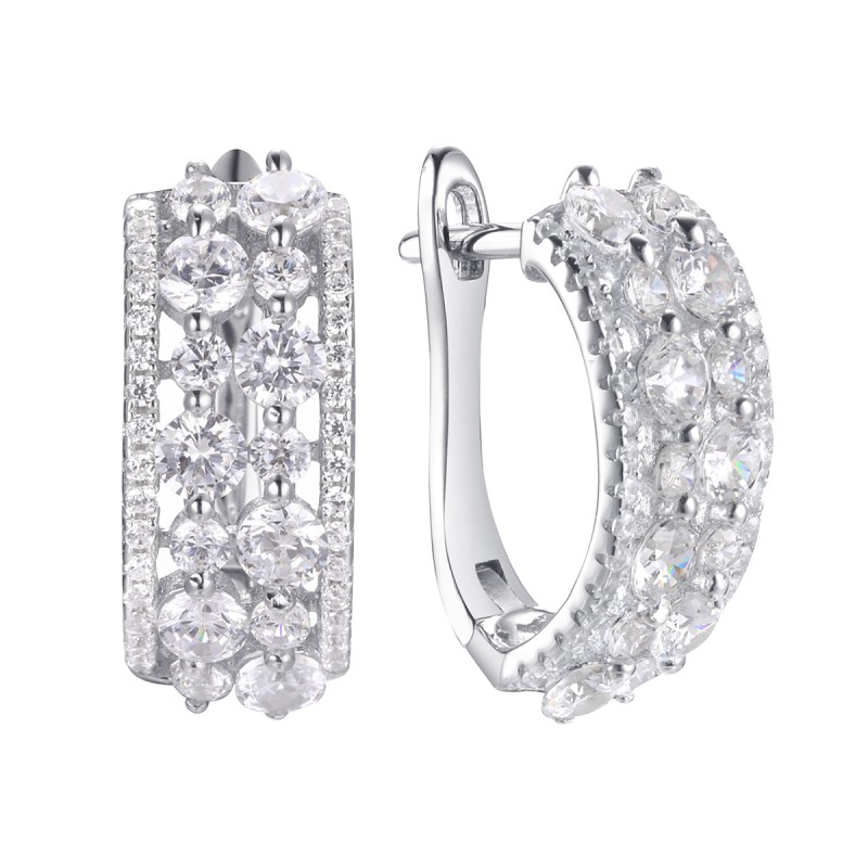 Серьги с фианитами из серебра 925 пробы с родиевым покрытием