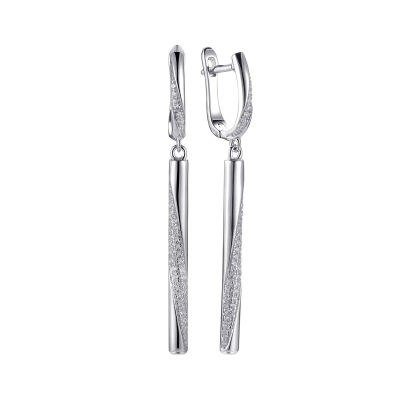Серьги с фианитами из серебра 925 пробы с родиевым покрытием