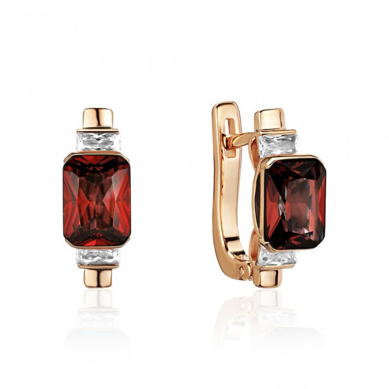 Серьги с гранатом и фианитом из красного золота 585 пробы (арт. 277806)