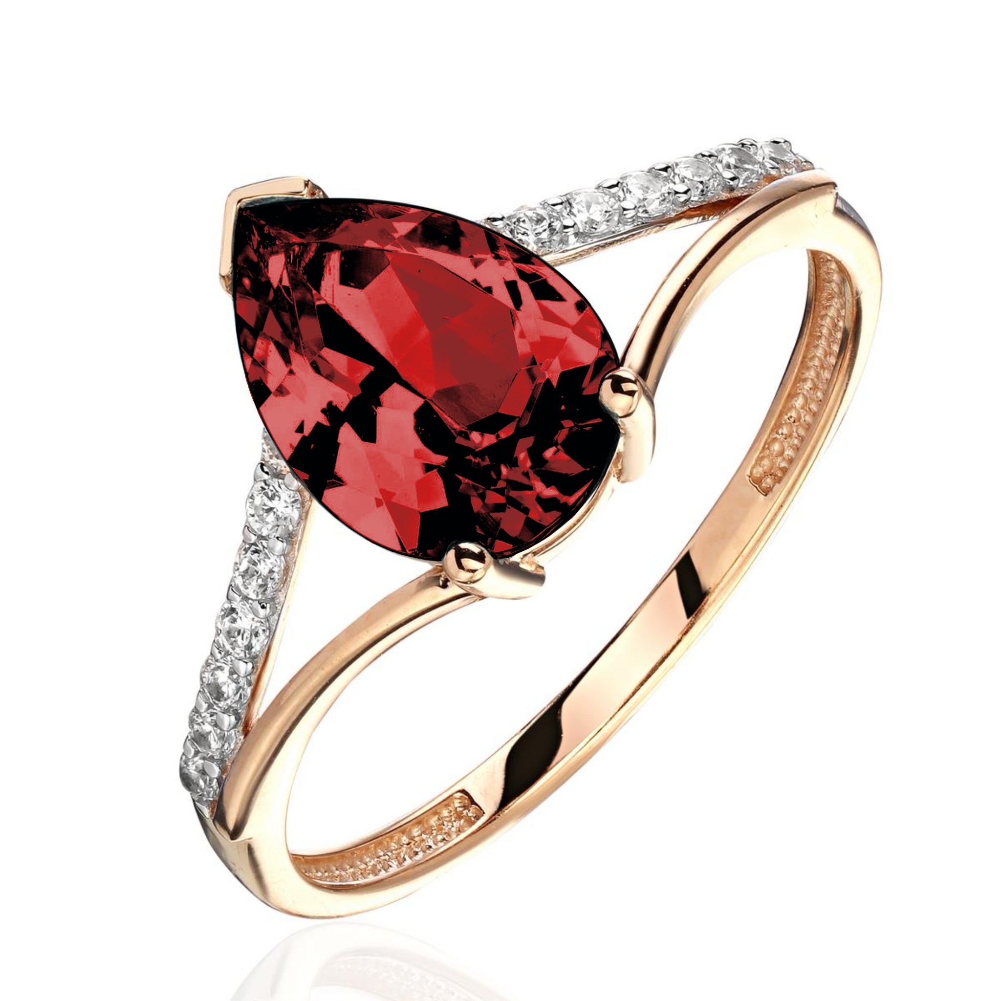 Фианит круг 0/0 14шт. 0.23ct 1.25*0*0 - Размер 17Вес 2.29 гр.Гранат груша 0/0 1шт. 1.93ct 10*7*0