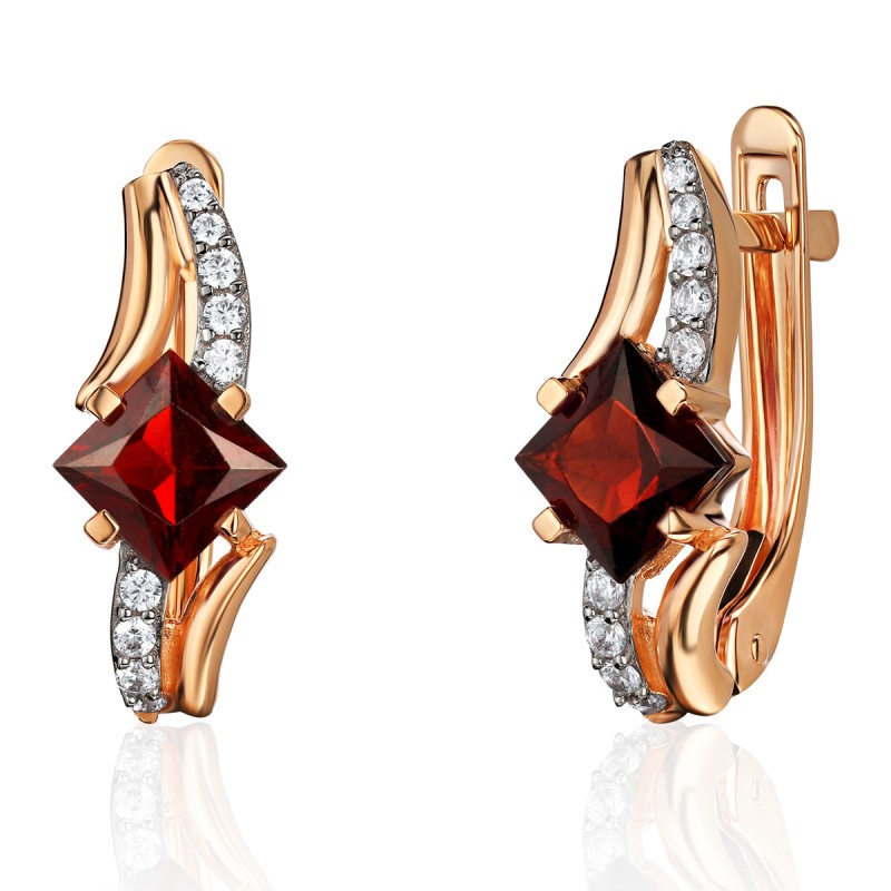 Серьги с гранатом и фианитом из красного золота 585 пробы можно купить в нашем интернет-магазине с доставкой по Москве, а также транспортными компаниями по всем городам России.