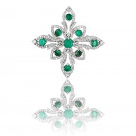 Броши и булавки с бриллиантом и изумрудом из белого золота 585 пробы (арт. 285546)