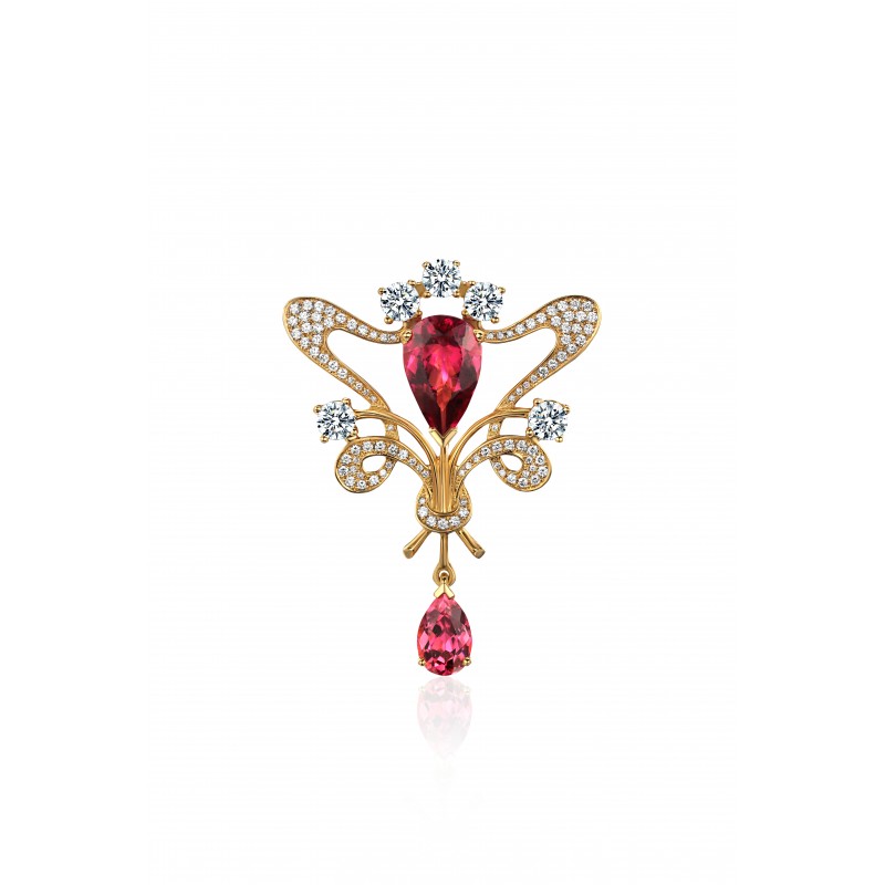 Броши и булавки с бриллиантом, сапфиром, турмалином и Рубеллит из желтого золота 750 пробы можно купить в нашем интернет-магазине с доставкой по Москве, а также транспортными компаниями по всем городам России.
