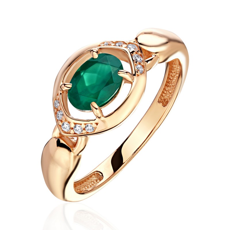 Кольцо с агатом и фианитом из красного золота 585 пробы (арт. 272994)