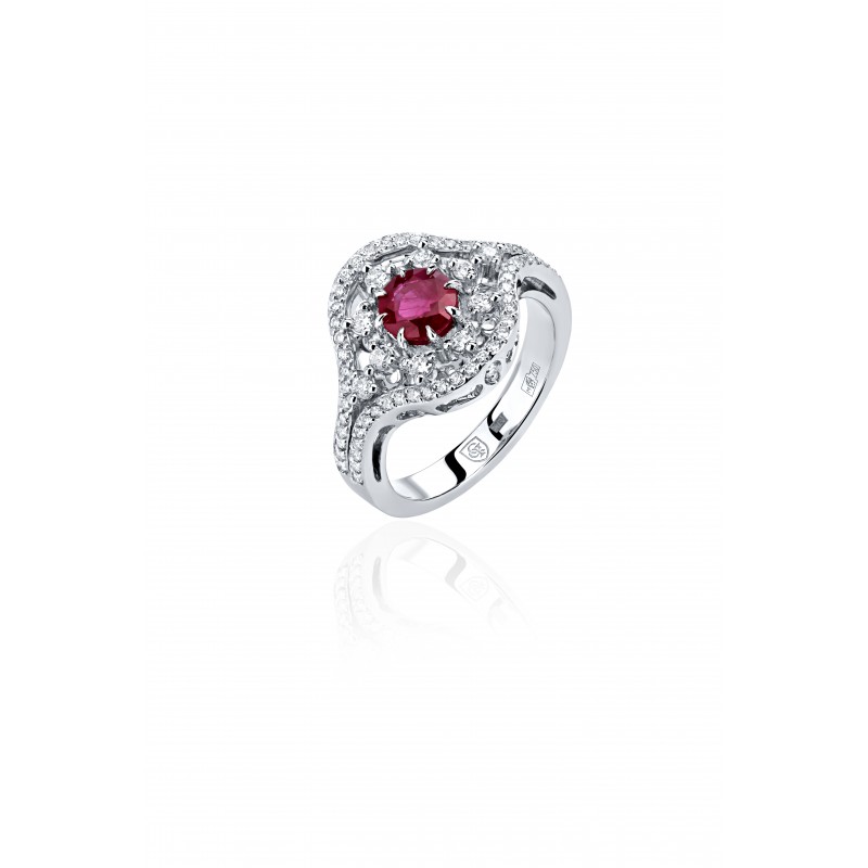 Кольцо с бриллиантом и рубином из белого золота 750 пробы можно купить в нашем интернет-магазине с доставкой по Москве, а также транспортными компаниями по всем городам России.