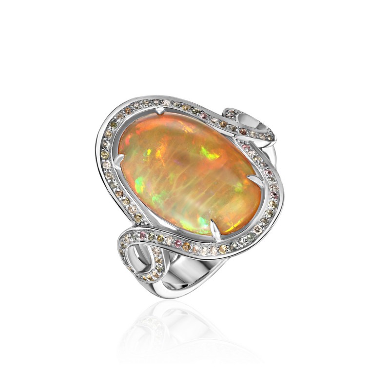 Кольцо с опалом, бриллиантом и сапфиром из белого золота 585 пробы можно купить в нашем интернет-магазине с доставкой по Москве, а также транспортными компаниями по всем городам России.
