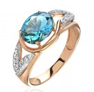 Кольцо с топазом и фианитом из красного золота 585 пробы (арт. 272875)