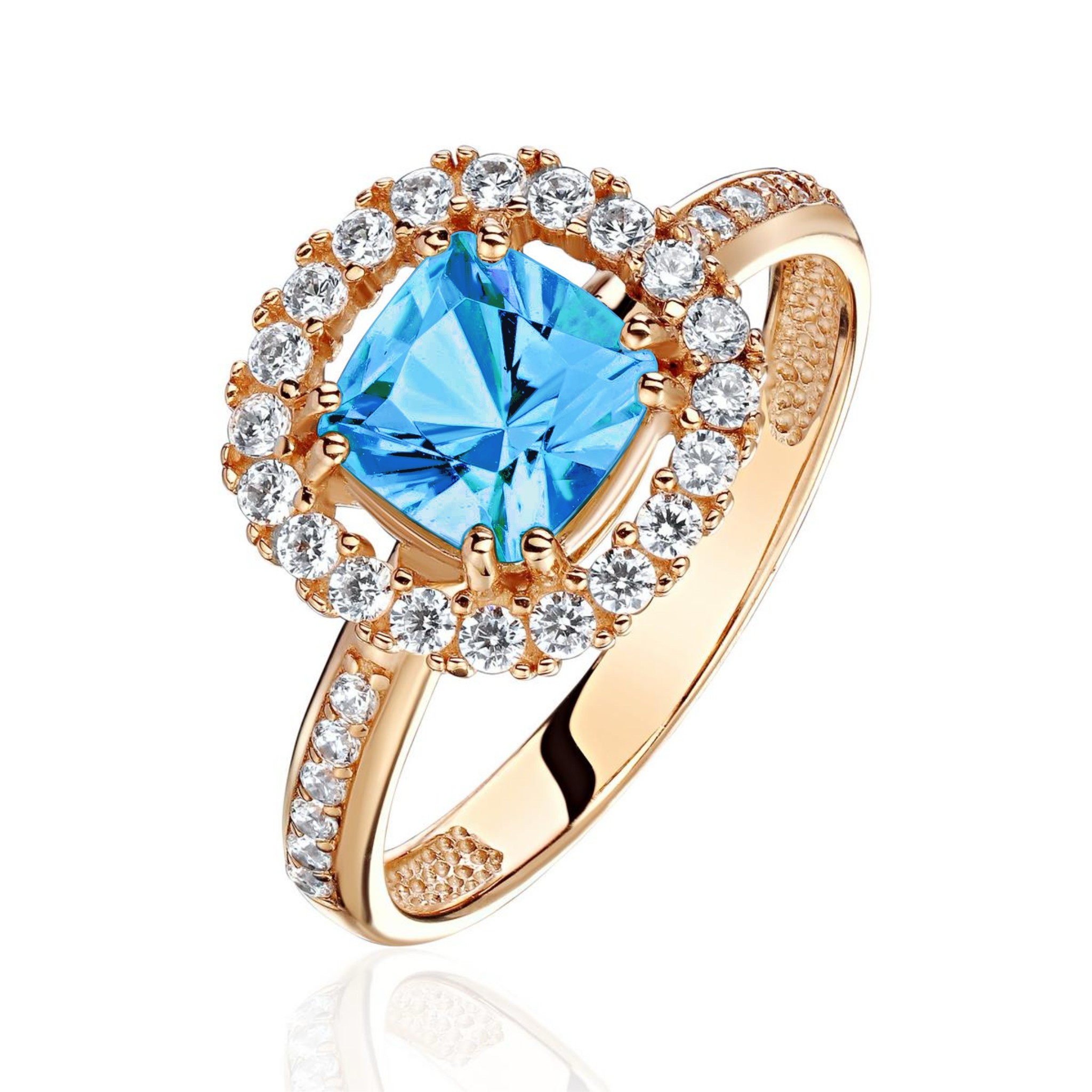 Кольцо с топазом и фианитом из красного золота 585 пробы (арт. 272938)
