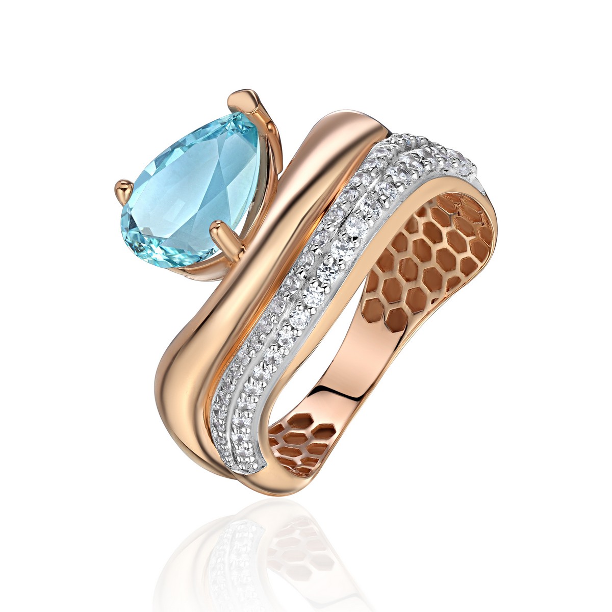 Кольцо с топазом и фианитом из красного золота 585 пробы можно купить в нашем интернет-магазине с доставкой по Москве, а также транспортными компаниями по всем городам России.